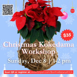 Learn the art of creating unique and festive Japanese moss ball planters while surrounded by the serene beauty of the Arboretum. This in-person event is perfect for plant lovers of all skill levels! All materials will be provided. Don't miss this opportunity to get creative and make your own stunning kokedama to take home in time for the holidays!
