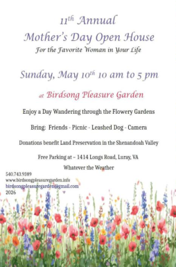 Mother's Day Open House at Birdsong Pleasure Garden