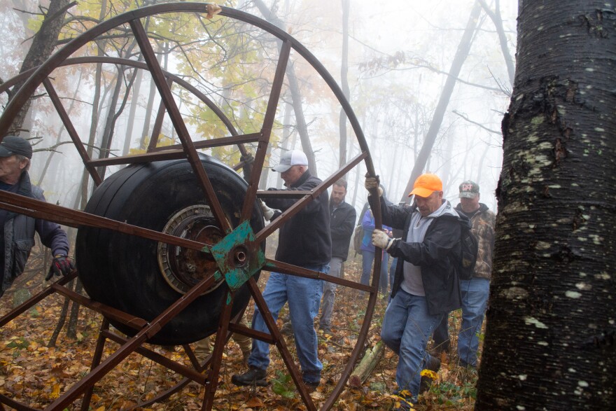 A landing gear wheel had been taken from the site shortly after the crash, and passed through different hands over the years before coming to local artist Mark Cline.